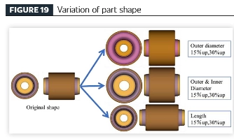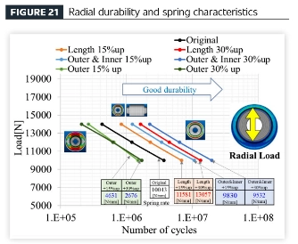 [थकान विश्लेषण प्रौद्योगिकी के माध्यम से एक कुशल वाहन उत्पाद डिजाइन प्रक्रिया की स्थापना] कंपन-पृथक रबर घटकों के लिए प्रस्तावित थकान विश्लेषण तकनीक को लागू करते हुए, ज्यामितीय भिन्नता (रबर की मात्रा) और स्थायित्व प्रदर्शन के बीच संबंधों की जांच करने के लिए एक ही सामग्री से बने घटकों पर एक पैरामीट्रिक अध्ययन आयोजित किया गया था। घटक ज्यामिति मूल भाग डिज़ाइन से प्राप्त की गई थी, जिसमें मॉडल विविधताएं शामिल थीं: