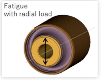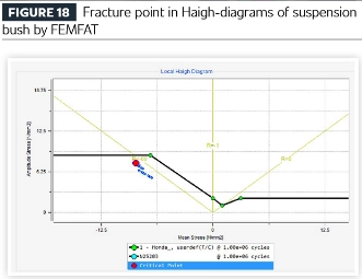 सस्पेंशन बुशिंग के लिए थकान सिमुलेशन परिणामों के हाई आरेख से संपीड़न तनाव अनुपात के तहत फ्रैक्चर का पता चलता है। यद्यपि रबर सामग्री पर तन्य और संपीड़ित भार समान रूप से लागू होते हैं, विश्लेषण से संकेत मिलता है कि विफलता अंततः संपीड़न के तहत शुरू होती है।
